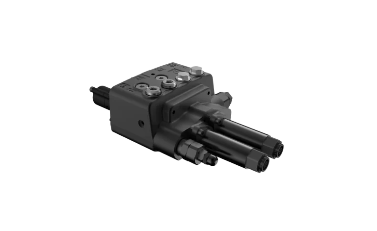 LVM52 a two sections monoblock front loader valve designed for front-end loaders up to 50 l/min. Valve is designed with series circuit and offering excellent operating performance with minimum spool leakage. The rear port construction enables easy piping and assembly of control wires and ready to accept multi-quick couplings