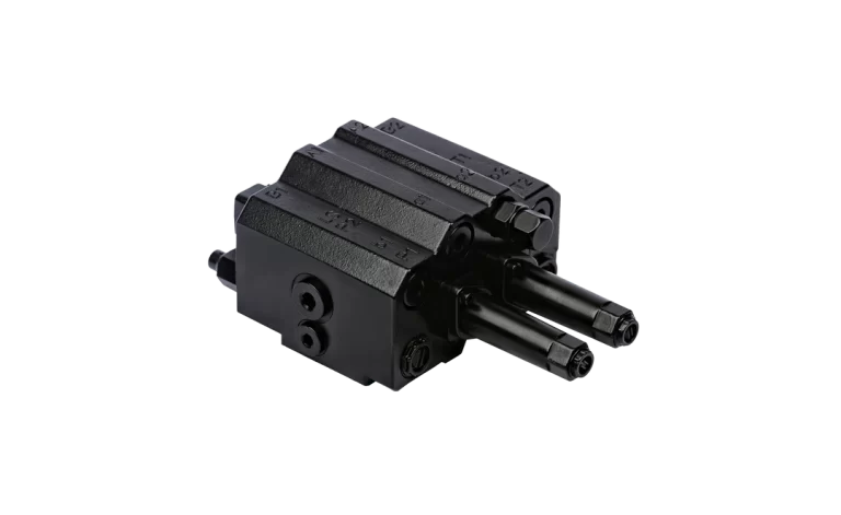 LVM92 is a control valve specifically designed for front-end loaders, suitable for flow rates up to 90 L/min and operating pressures up to 250 bar. The valve body is machined to support two configuration options — Open Centre or Load-Sensing — allowing system versatility for different hydraulic architectures. Its rear-port design enables direct connection of multi-quick couplings and provides easy routing of piping and cable control lines. LVM92 delivers stable operating performance with minimal spool leakage.